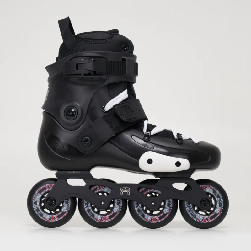 The FR X 80 boot is mounted upon the new X2R 243mm black frame with FR Street Kings wheels in 80mm, the perfect all-around size for recreational, fitness and freestyle skating.